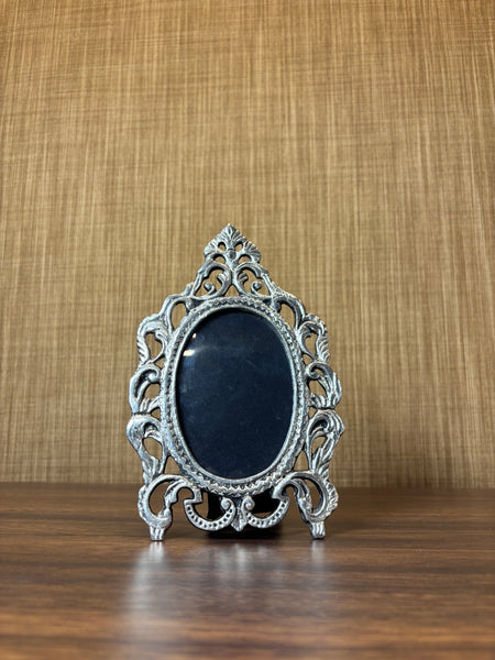 Delicate in size, rich in charm — our German Silver Mini Photo Frame is the perfect blend of nostalgia and elegance. Handcrafted with intricate patterns in a radiant silver finish, it’s ideal for framing cherished moments, small portraits, or spiritual images. Whether placed on a pooja tray, desk, or gifted as a token of love, this mini frame adds a touch of tradition and sophistication to any setting. Compact yet striking, it's a keepsake that holds not just a photo, but emotion.