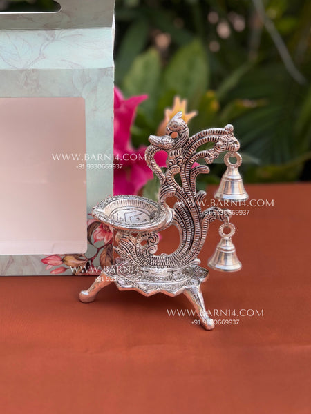 Our enchanting Double Bell Parrot Deepak is a stunning fusion of beauty and functionality that will illuminate your space with elegance. Handcrafted with attention to detail, the Double Bell Parrot Deepak showcases the intricate beauty of Indian artistry. Made from premium materials, this Deepak exudes durability and timeless appeal. Versatile and adaptable, the Double Bell Parrot Deepak can be displayed in various settings. Whether you place it on an altar for religious ceremonies or use it as a centerpiece for special occasions, the Double Bell Parrot Deepak also makes a thoughtful and meaningful gift as a symbol of spirituality and beauty. Whether it's for housewarmings, weddings, festivals, or any auspicious occasion, this Deepam is a heartfelt expression of well-wishes and blessings, conveying a sense of peace and harmony.