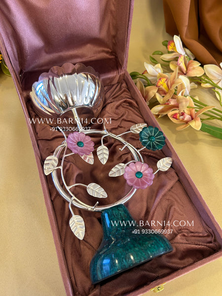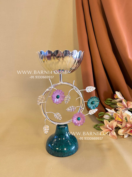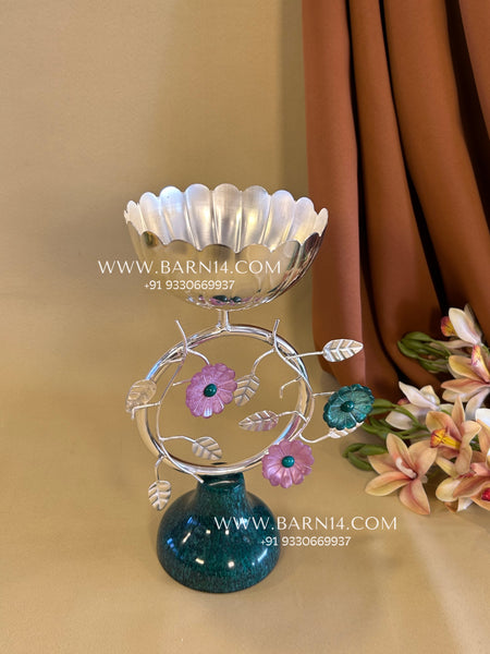 Elevate your home décor with this stunning handcrafted silver floral decorative bowl featuring delicate flower accents and a rich green resin-style base. Designed to blend elegance with artistic craftsmanship, this premium centerpiece adds sophistication to any living space.