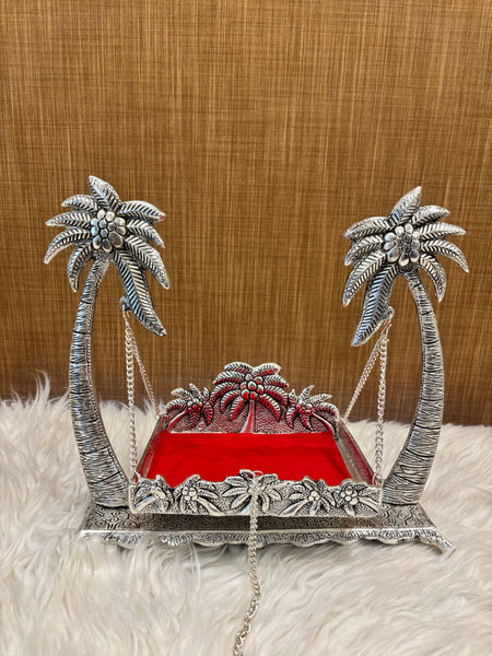 Intricately crafted with a beautiful palm tree arch on both sides, this Laddu Gopal jhula brings a refreshing, nature-inspired twist to traditional design. The swing seat is adorned with fine detailing and is perfect to cradle your Laddu Gopal during festivals like Janmashtami or for everyday devotion.