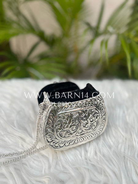 Add a touch of timeless grace to your look with our Small German Silver Clutch — a compact yet stunning accessory that embodies heritage craftsmanship. Made from high-quality German silver, each clutch features delicate engravings and a vintage-inspired finish that perfectly complements ethnic, fusion, or festive attire. Ideal for weddings, poojas, and evening events, this clutch is the perfect companion when you want to carry just the essentials without compromising on style.