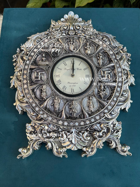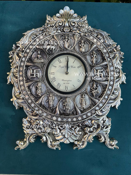 Bring home the perfect combination of elegance, devotion, and timeless craftsmanship with the Das Avatar Pure Silver Clock. Designed with exquisite purity and artistic detailing, this premium silver timepiece features the Dashavatara—the ten sacred incarnations of Lord Vishnu—symbolizing protection, balance, and cosmic order.