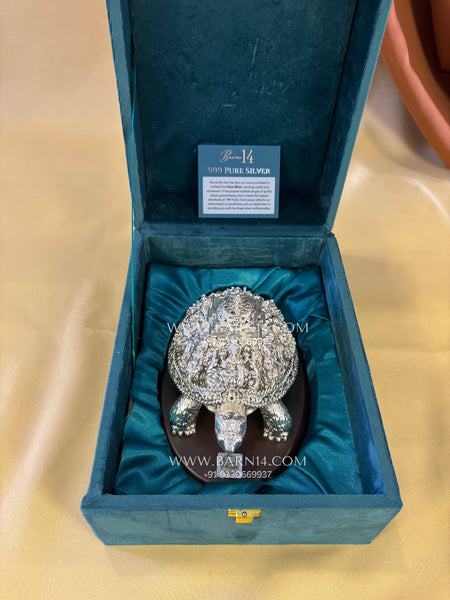 Invite abundance, stability, and divine prosperity into your space with this exquisitely crafted Pure Silver Ashtalakshmi Tortoise. Made from Pure Silver, this sacred Vastu and spiritual artefact beautifully features the Ashtalakshmi engraved on the tortoise, symbolizing complete wealth, success, and harmony in life.