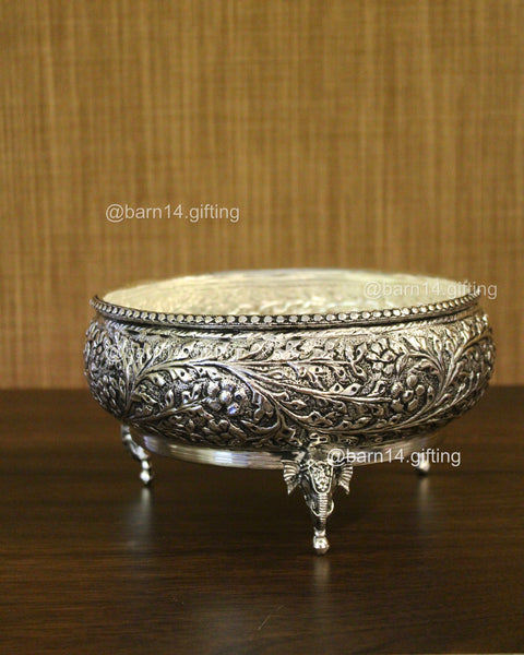 Bring home the charm of Indian tradition with this exquisite Elephant Trunk Urli, beautifully crafted with detailed elephant motifs symbolizing wisdom, prosperity, and strength. Traditionally used in South Indian households, an urli filled with water, flowers, or floating candles is believed to attract positivity and harmony.