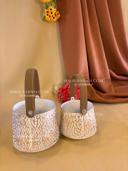 Add a touch of luxury and modern charm to your decor with this Textured Decorative Basket with a leather handle designed to combine style, utility, and sophistication. Made with a premium embossed texture and complemented by sturdy faux-leather handles, these baskets instantly enhance any space with their contemporary aesthetic.
